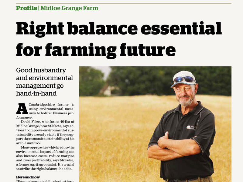 David Felce, who farms 404ha at Midloe Grange, near St Neots, says actions to improve environmental sustainability are only viable if they support the economic sustainability of his arable unit too.