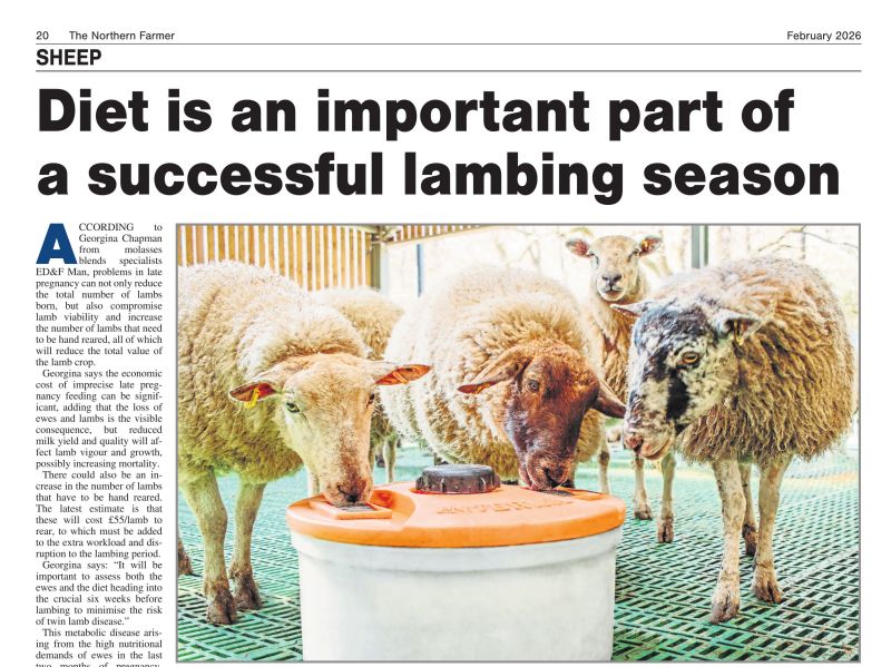 ACCORDING to Georgina Chapman from molasses blends specialists ED&F Man, problems in late pregnancy can not only reduce the total number of lambs born, but also compromise lamb viability and increase the number of lambs that need to be hand reared, all of which will reduce the total value of the lamb crop.