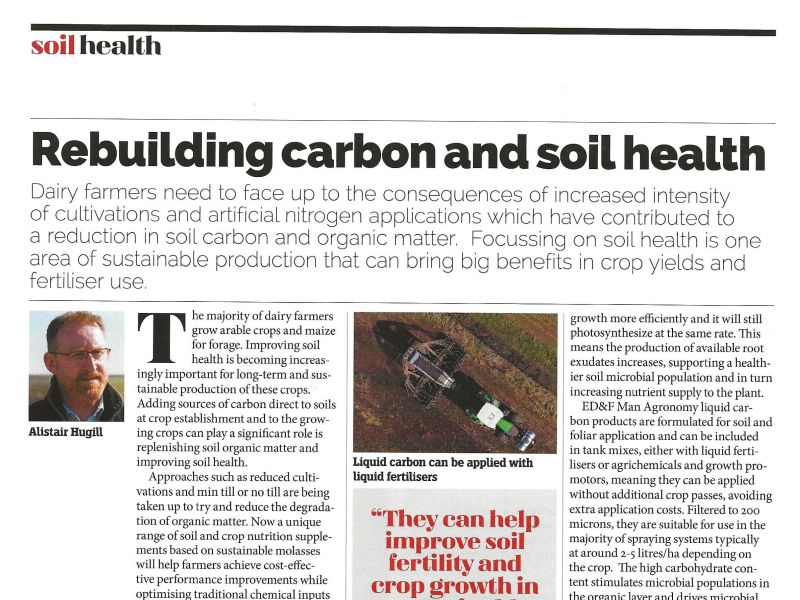 Dairy farmers need to face up to the consequences of increased intensity of cultivations and artificial nitrogen applications which have contributed to a reduction in soil carbon and organic matter. Focussing on soil health is one area of sustainable production that can bring big benefits in crop yields and fertiliser use.